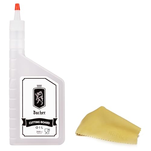 Bacher Skärbrädsolja 200 ml – premium matkvalitet mineralolja set – skärbrädsolja med polerduk – slaktarblockolja – livsmedelssäker mineralolja för trä, skiffer skärbrädor