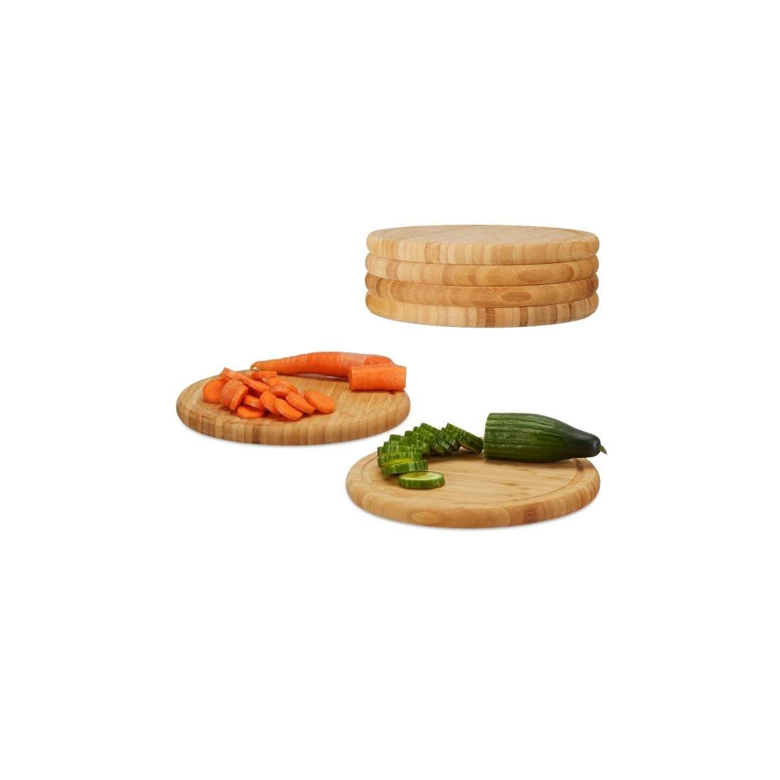 Relaxdays skärbrädor set om 4, träskärbrädor med handtag, hacka & skär på köksbrädor, serveringsbrickor av bambu, natur
