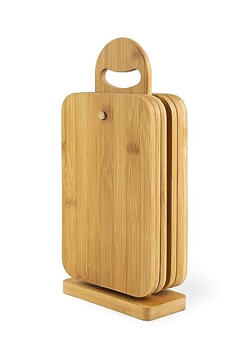 Excelsa Ecoliving Set med 4 skärbrädor med hållare, bambuträ, 28 x 25 cm
