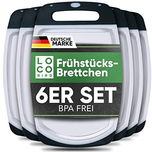 Sidorenko Loco Bird Set med 6 frukostbrädor av BPA-fri plast – 25 x 16 cm – diskmaskinssäker – skärbrädor med halkfritt handtag – brädor – antibakteriell frukostbräda, BRETTCHEN-PLASTIK-6SET