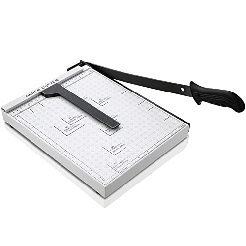 COOCHEER Pappersskärare professionell fotoskärare spakskärare pappersskärmaskin skärmaskin bindningsanordning skårmaskin för skola och kontor, vit, A4
