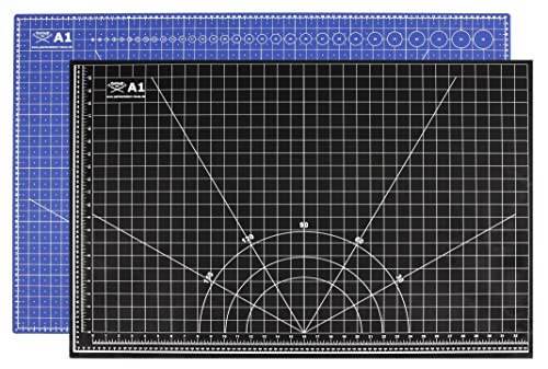 Snyderline snutderline® skärmatta DIN A1 (60 x 90 cm) i blå/svart - kan användas på båda sidor, självläkande skärunderlägg, tryckt i cm och tum