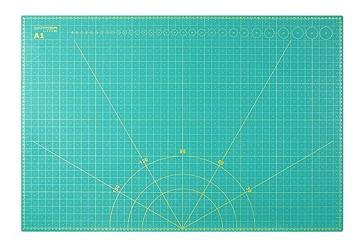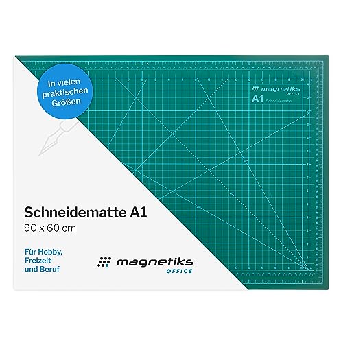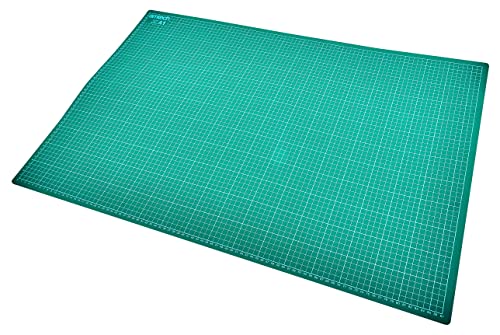 OfficeTree skärmatta A1 – grön – med dubbelsidiga rutnät och markeringar – pysselunderlägg 90 x 60 som sytillbehör – även som skärunderlag och målningsunderlag