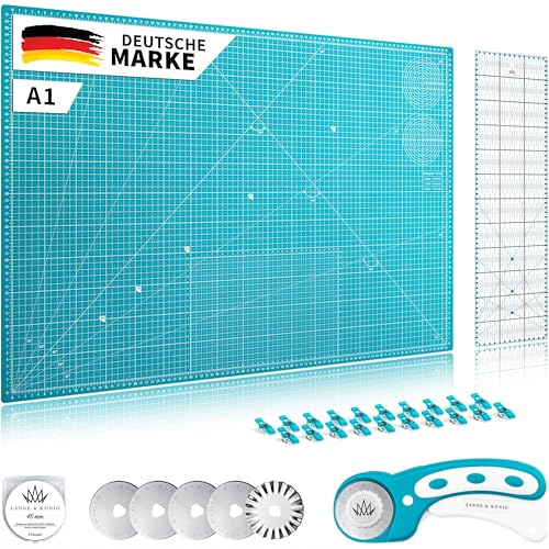 Lång & kung skärmatta set A1 inkl. rullskärare, skärunderlägg, patchwork-linjal, syklämmor och blad – supersömnadstillbehör sömnad tillbehör tyger för sömnad rullskärare tyg klämmor