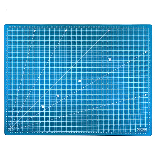 MAXKO Skärmatta 90 x 60 cm, blå, självläkande, tryckt på båda sidor, metrisk klassificering/skärunderlägg/skrivbordsunderlägg/A1/90 x 60/vinkelmått 15°