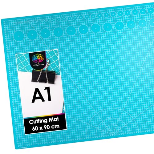 OfficeTree Skärmatta A1 – blå – med galler och märken på båda sidor – pysselmatta 90 x 60 cm som tillbehör – även som skärmatta och lackunderlägg