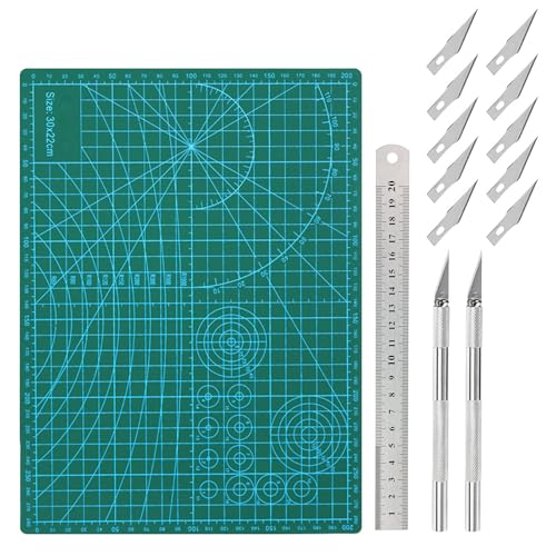MIPIACE Skärmatta dubbelsidig A4 halkfri yta 3 mm tjock självläkande skärmatta med skärlinjal hantverk skärbräda för papper sömnad hantverk scrapbooking