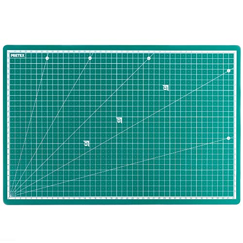 PRETEX Skärmatta A3 självläkande, metrisk uppdelning av sömnadsunderlägg/skärunderlägg/pysselunderlägg 45 x 30 cm vinkelmått 15° – skärmatta