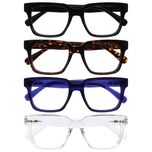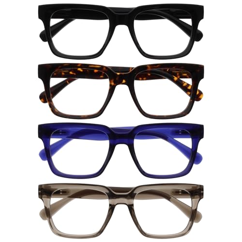 OPULIZE ERA Blåljusblockerande läsglasögon – läsare – singlar och multipack – antireflekterande och anti-bländning – UV400-skydd – överdimensionerad ram – dator- och skärmglasögon – män, kvinnor, 4