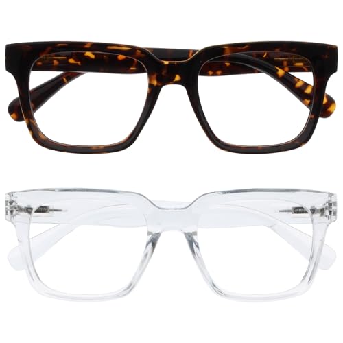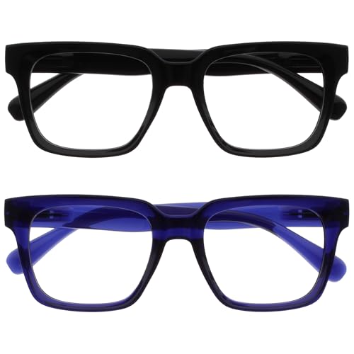 OPULIZE ERA Blåljusblockerande läsglasögon – läsare – singlar och multipack – antireflekterande och anti-bländning – UV400-skydd – överdimensionerad ram – dator- och skärmglasögon – män, kvinnor, 2
