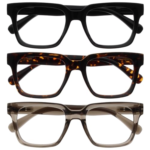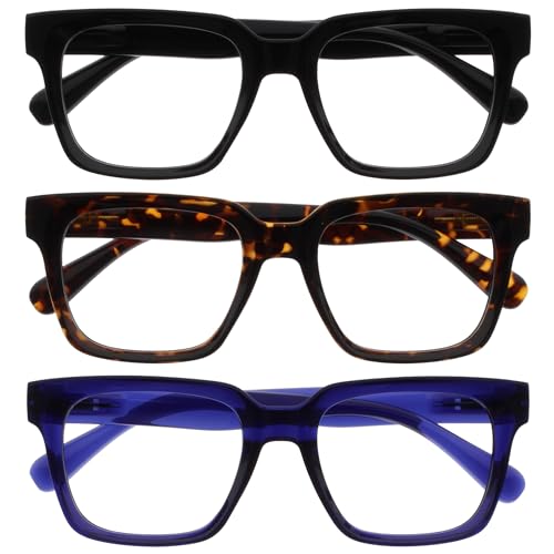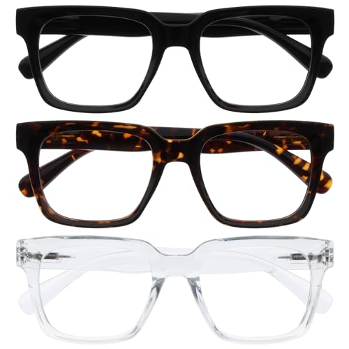 OPULIZE ERA Blåljusblockerande läsglasögon – läsare – singlar och multipack – antireflekterande och anti-bländning – UV400-skydd – överdimensionerad ram – dator- och skärmglasögon – män, kvinnor, 3