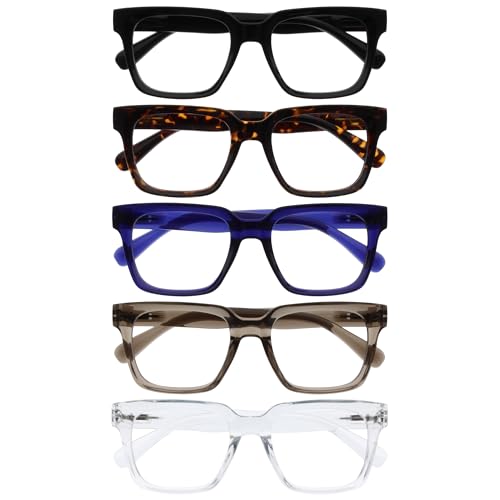 OPULIZE ERA Blåljusblockerande läsglasögon – läsare – singlar och multipack – antireflekterande och anti-bländning – UV400-skydd – överdimensionerad ram – dator- och skärmglasögon – män, kvinnor, 5