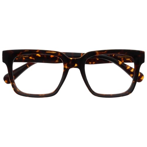 OPULIZE ERA Blåljusglasögon – klar lins – antireflekterande och anti-bländning – UV400-skydd – överdimensionerad ram – dator- och skärmglasögon – brunt sköldpaddsskal – män kvinnor – +0,00, Brun