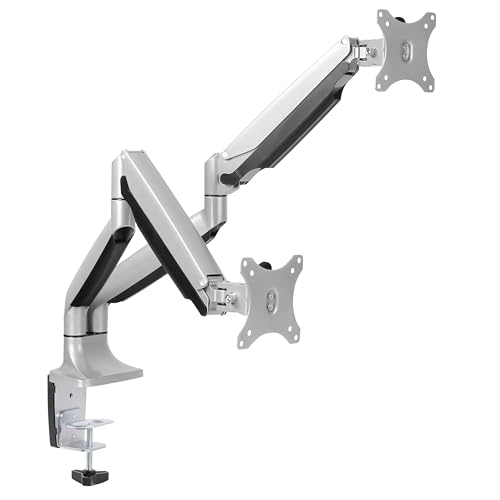 RICOO Bildskärmshållare 2 bildskärmar TS6611 bordsstativ med gasfjäder bildskärmhållare 13–27 tum VESA 75 x 75 100 x 100 bildskärmarm för bordsmontering, skärmhållare, svängbar bildskärmhållare