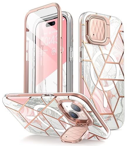 i-Blason Cosmo Mag för iPhone 15 fodral/iPhone 14/13 fodral [6,1 tum] med kameraskyddsstativ, [MagSafe-kompatibel] slimmat snyggt skyddsfodral med inbyggt skärmskydd (marmor)