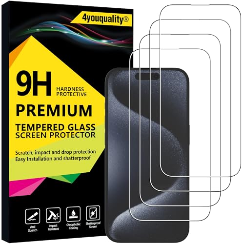 4youquality [4-pack skärmskydd för iPhone 15 Pro (6,1-tum), härdat glasfilm, [Livstidssupport] [Stöttskydd] [Anti-splitter] [Anti-rep]