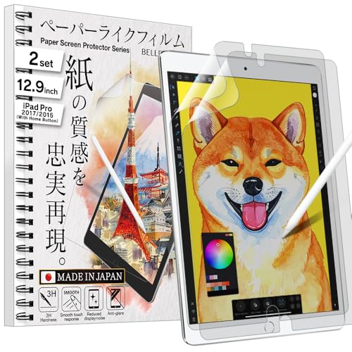 Bellemond Set med 2 – tillverkad i Japan Kent papper, slätt skärmskydd för iPad Pro 12,9 tum 2,/1. Generation (2017/15 – med hemknapp) – minskar nötning pennspets med upp till 86 % – WIPD15129PLK(2)