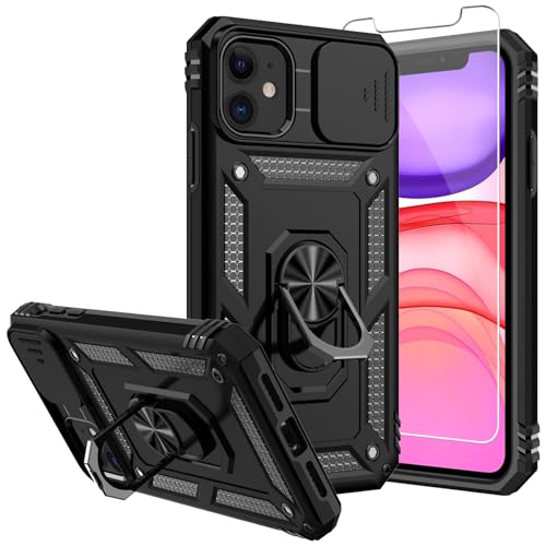 SKTGSLAMY för iPhone 11-fodral, med skärmskydd och kameraskydd, [Militärklass] 15 ft. Dropptestat skydd med magnetiskt stativ, skyddsfodral för iPhone 11 6,1 tum, svart