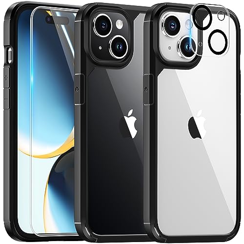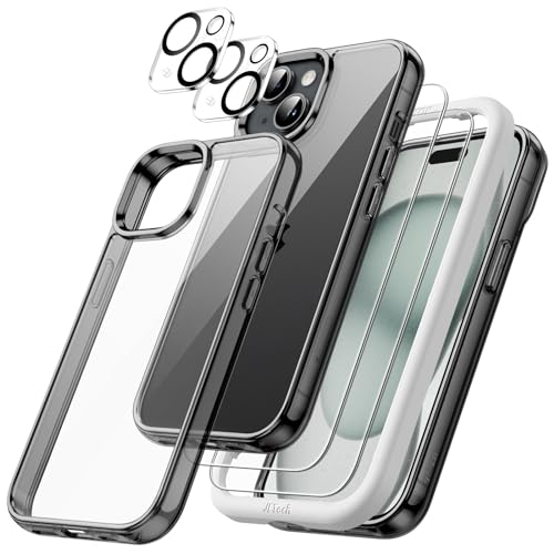 JETech 5 i 1 Fodral för iPhone 15 6,1 Tum med 2-Pack Skärmskydd i Härdat Glas och Kameralinsskydd, Lcke Gulnande Stötsäkert Buffert Mobiltelefonfodral (Svart)