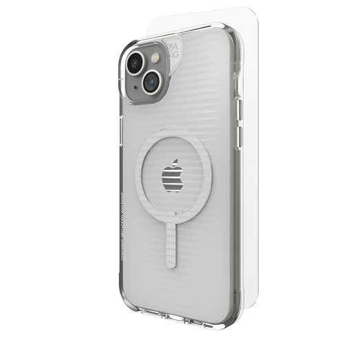 ZAGG Luxe Snap & Glass 360 Grafenförstärkt Mobilskal med Härdat Glas Skärmskydd för iPhone 15 Plus [6,7 tum], MagSafe-kompatibelt, Antigulning, Stöttåligt Bakskal (Transparent)