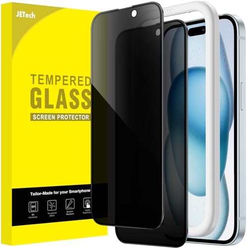JETech Privacy Skärmskydd för iPhone 15 6,1 Tum med Kameralinsskydd, Enkelt Installation Verktyg, Screen Protector Privat Härdat Glas Film, 2-Pack Varje