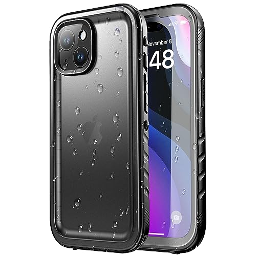 SPORTLINK för iPhone 15 Plus fodral vattentätt – inbyggt skärmskydd [IP68 undervatten] [6,6 FT militär dropptak] [dammtät] [stötsäker] helkroppsskyddande telefonfodral 6,7 tum svart
