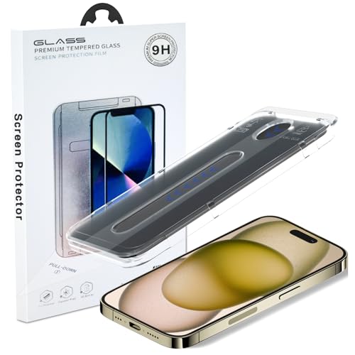 JETech Skärmskydd för iPhone 15 6,1-Tum, 10 Sekunders Superenkel Installation med Ett Steg Inriktningsfack, Bubbla-Fri Härdat Glasfilm, Case-Friendly, HD Klar, 2-Pack