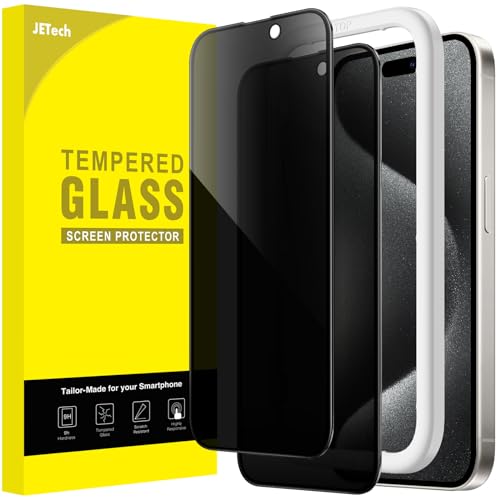 JETech Privacy Skärmskydd för iPhone 15 Pro 6,1 Tum med Kameralinsskydd, Enkelt Installation Verktyg, Screen Protector Privat Härdat Glas Film, 2-Pack Varje