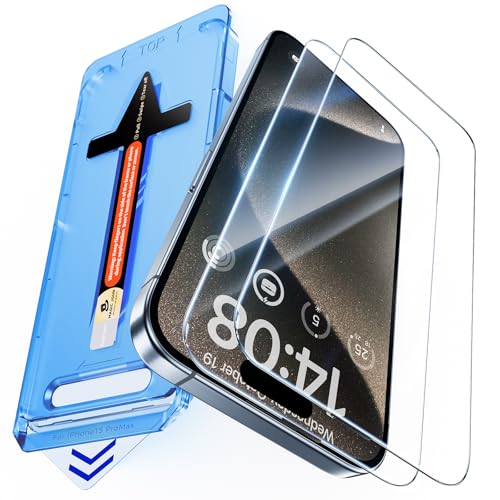 JETech Skärmskydd för iPhone 15 Pro Max 6,7-Tum, 10 Sekunders Superenkel Installation med Ett Steg Inriktningsfack, Bubbla-Fri Härdat Glasfilm, Case-Friendly, HD Klar, 2-Pack
