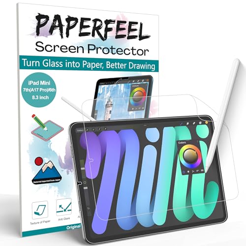 PAPERFEEL [2 stycken] film för iPad Mini A17 Pro 2024 (7 generationen/iPad Mini 6. Generation 2021 skyddsfilm, skärmskydd för iPad 8,3 tum för att skriva, rita, bländskydd, anti-fingeravtryck