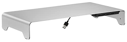 mywall monitorstativ HT46L i aluminium med halkfria silikonkuddar, bildskärmshöjning med 4 USB 2.0-portar, skärmstativ för skärmar och bärbara datorer 11–32 tum, belastning upp till 10 kg