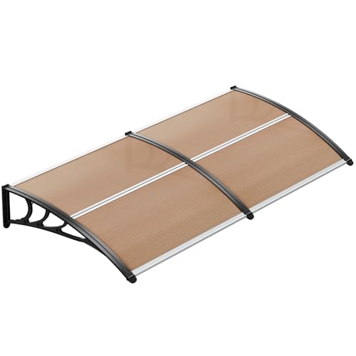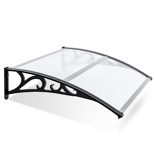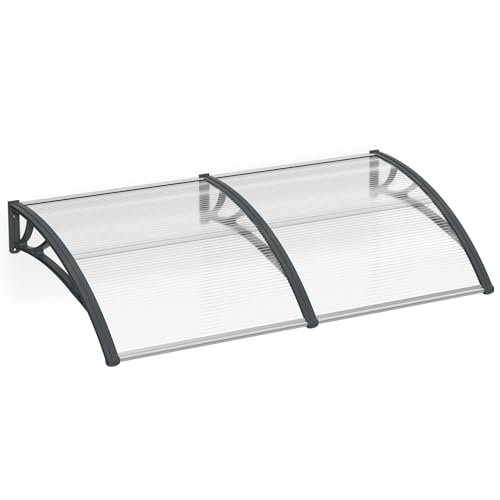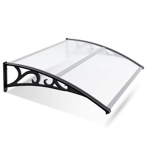 VOUNOT Skärmtak för ytterdörr 120 x 80 cm, baldakin ytterdörr av aluminium och polykarbonat, transparent bågskärm, pulstaket