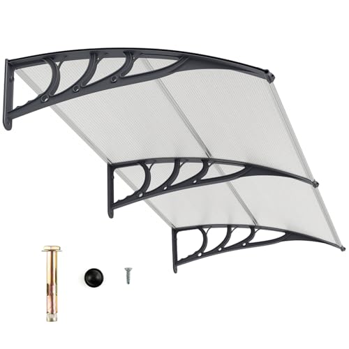 Vigevee Skärmtak för ytterdörr 40 x 80 cm transparent polykarbonat pulsbåge-tak, vägglåda, baldakin, yttertak, dörrtak för balkong, fönster, husentré, regnskydd