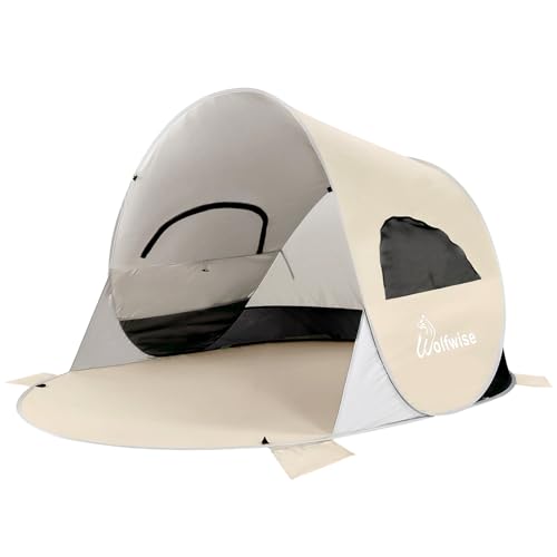 WolfWise UPF 50+ Enkelt pop-up strandtält för 3-4 personer sportparasoll direkt solskyddstält skärmtak för skugga, Beige