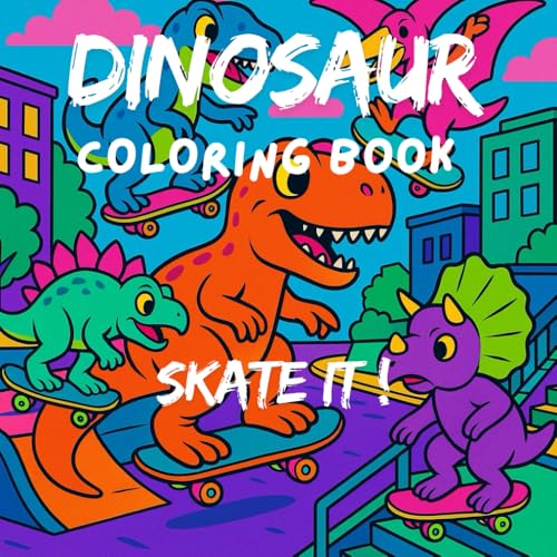 DINOSAUR COLORING BOOK: skateboard dinosaur fun kids coloring activity book