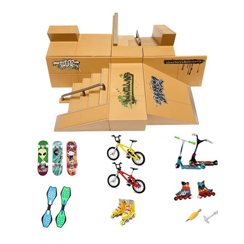 IOUGDSEC Skate Park-kit, rampdelar för finger, skateboard, park, kit, del träningsrekvisita med 4 fingerdäck, 2 fingercykel, 1 par skridskor och 1 skotrar