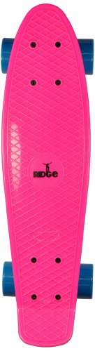 Ridge Skateboard 55 cm mini cruiser retrostil: Ltd Edition armhålor, helt U färdigmonterad, rosa- svart - grön