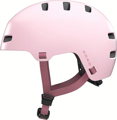 ABUS XOXO cykelhjälm - cityhjälm i skaterlook - hjälm för skateboard, cykel, sparkcykel - med optimerad hakplatta - för tonåringar och vuxna - storlek M, rosa