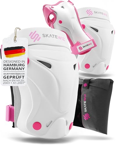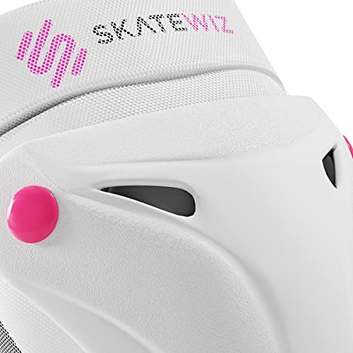 SKATEWIZ Skyddskit för barn [6 delar] - Knäskydd, Armbågsskydd & Handledsskydd för Skateboard, Inlines & Sparkcykel - PROTECT-1, Storlek M, Rosa