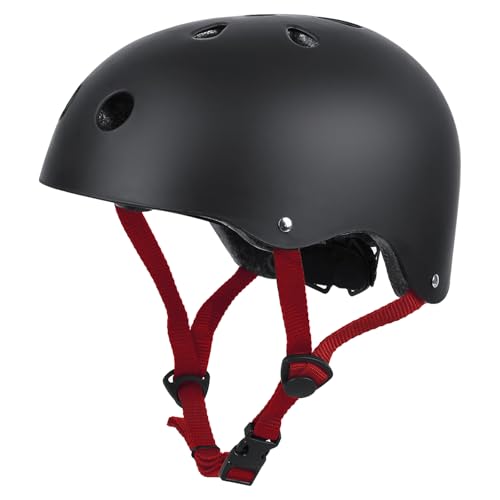 LeapBeast Skatehjälm, CE-certifierad cykelhjälm unisex vuxna män och kvinnor multisport för cykling, skridskoåkning, skridskoåkning (svart - röd, Large)