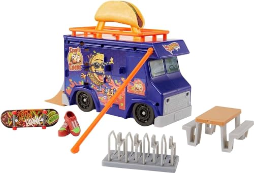 Hot Wheels Skate bärbar skatepark, tacobilväska med en exklusiv fingerbräda, ett par avtagbara skateskor och förvaring, reseleksaker, HMK00