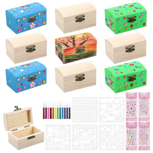Fentar 10 st trälådor för hantverk, skattkista barn, gör-det-själv-hantverkslåda, kreativa gåvor för flickor, liten trälåda med gångjärnslock, konst och hantverk för barn ålder 6 med färgpennor,