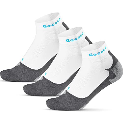 GOCOCO Light Sport Löparstrumpor, Tunna, Ankelhöga, Svala, Utan Sömmar och Motverkar Skavsår för Herr & Dam, 3-Pack, Vit, 42-44
