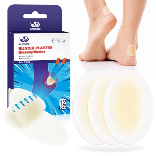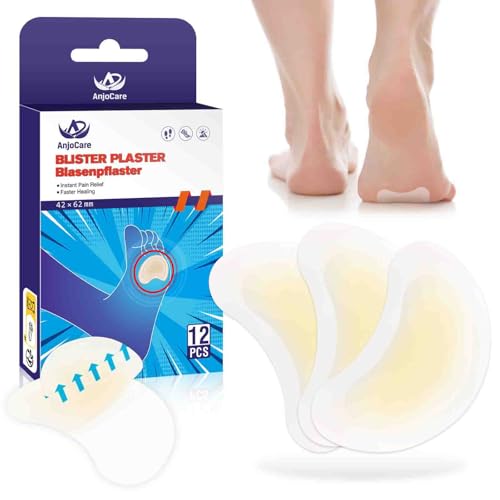 AnjoCare blister plåster för fötter, 12 st osynliga hydrokolloidgelébandage för skavsår, vattentäta blister plåster för tår, förebyggande och läkning av hälskavsår