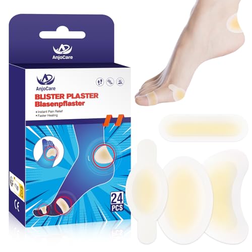 AnjoCare blister plåster för fötter, 24 st osynliga hydrokolloidgelébandage för skavsår, vattentäta blister plåster för tår, förebyggande och läkning av hälskavsår