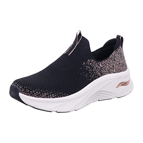 Skechers Arch Fit D'lux dam Sneaker,Svart stickad roséguld trim, 38 EU