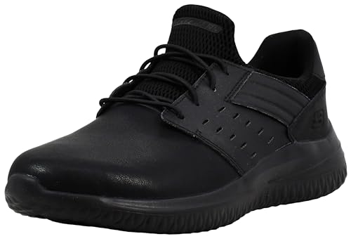 Skechers Delson 3.0 Ezra Skor i läder med bungee-snörning, slip-on, Svart/Svart, 42 EU