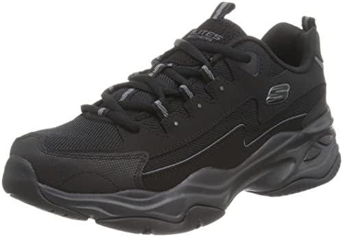 Skechers Herr D'lites 4.0 Sneaker, Svart läder Pu nät svart trim, 44 EU
