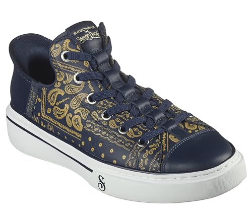Skechers Unisex Hands-free Slip-ins x Hund-Snoop ONE Dubbel G sneakers, Marinblå/Guld Bandana Tryck Läder, 11 UK, Marinblå guld bandana tryck läder, 46 EU
