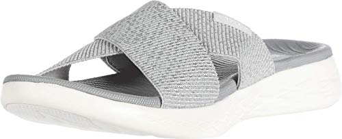 Skechers Dam On The GO 600-Läcker platt sandal, Svart grå textil, 36 EU